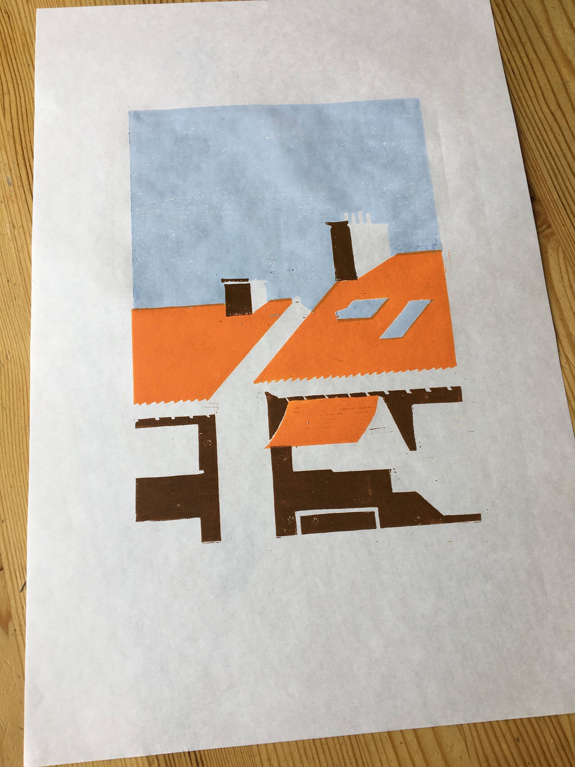 Linosnede gemaakt in 2023 tijdens cursus bij Ars Amulae (Leiden).